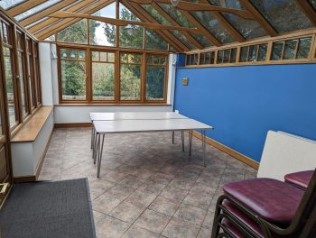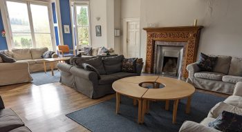 - There is a lounge with sofas and a fireplace, a chapel with seating for up to 40 (10mx6m) and three dining rooms for your catering/additional meeting spaces. If required these could also be used for meeting spaces but would need to be cleared 30 minutes before meals, ready for the staff to set up.